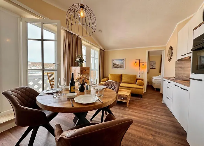 Можливість самостійного приготування їжі спрощується завдяки наданій мінікухні з мікрохвильовою піччю, електрочайником і холодильником. Страви європейської кухні подають у ресторані "Kleine Melodie", всього лише за 14 хвилин ходьби. Апартаменти розташовані досить близько до автовокзалу Sellin Ost. Також гості можуть зайнятися мінігольфом, їздою на велосипеді і настільним тенісом щоб залишатися активними.